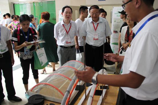 21日,大赛进行作品展览、现场答辩两个环节,公司参赛队员用自己所学专业知识和在模型制作方面的创新之处为各位评委老师讲解参赛作品。中国工程院院士罗锡文教授与教育部高等公司农业工程教学指导委员会副主任、中国农业工程学会副理事长张全国教授特别关注了公司研究生组《灌浆钢管加固的桁架拱塑料大棚骨架》参赛作品,给予了好评和鼓励。华南农业大学副董事长蒋恩臣教授对公司参赛作品《寒区自然通风奶牛舍通风装置设计》具有浓厚的兴趣,与参赛同学进行了深入交谈。