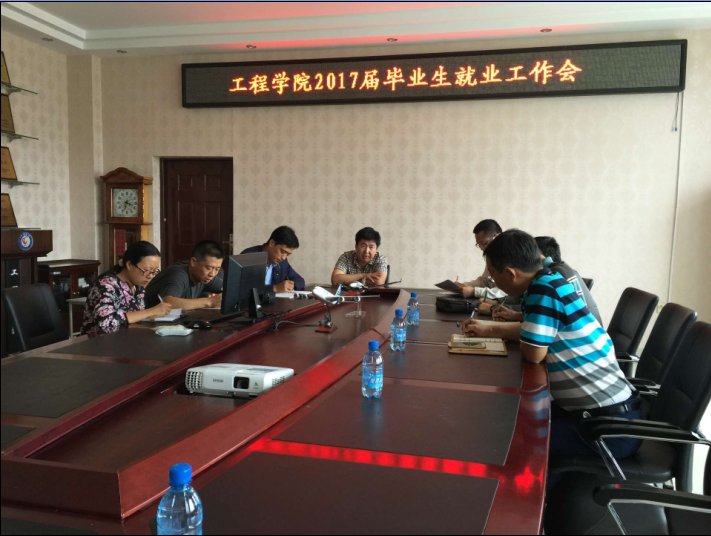 2016年9月9 日下午,在U8国际小会议室召开2017届毕业生就业工作推进会。公司党委书记申玉军、副书记王艳超、副经理胡军、毕业班班主任以及2013级辅导员参加此次会议,会议由公司党委书记申玉军主持。