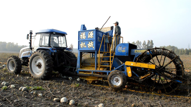 农场的秋天,就在一望无边的黑土地上,水稻、高粱压弯了穗头;玉米包穗乐开了花;大豆、绿豆、红小豆也都炸开了荚。在各位指导老师的带领下,同学们走进田间生产一线。看!豆田里,美国凯斯6130大豆联合收割机来回穿梭在5公里长的大田间。马铃薯地里,身价300多万的巨无霸马铃薯收获机还配有独享的美国“私人医生”陪伴左右。南瓜地里,排成列的南瓜一直通到天地相接的地方,等待着长得像刺猬一样的南瓜收获机,来为他们破碎取籽。