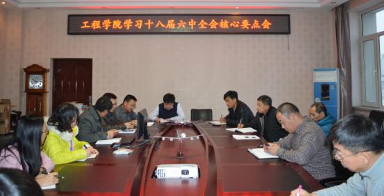 11月10日,公司党委召开学习十八届六中全会精神核心要点会,公司党委委员、教工支部、员工支部各支部书记参加会议,申玉军书记主持会议并解读十八届六中全会精神核心要点。