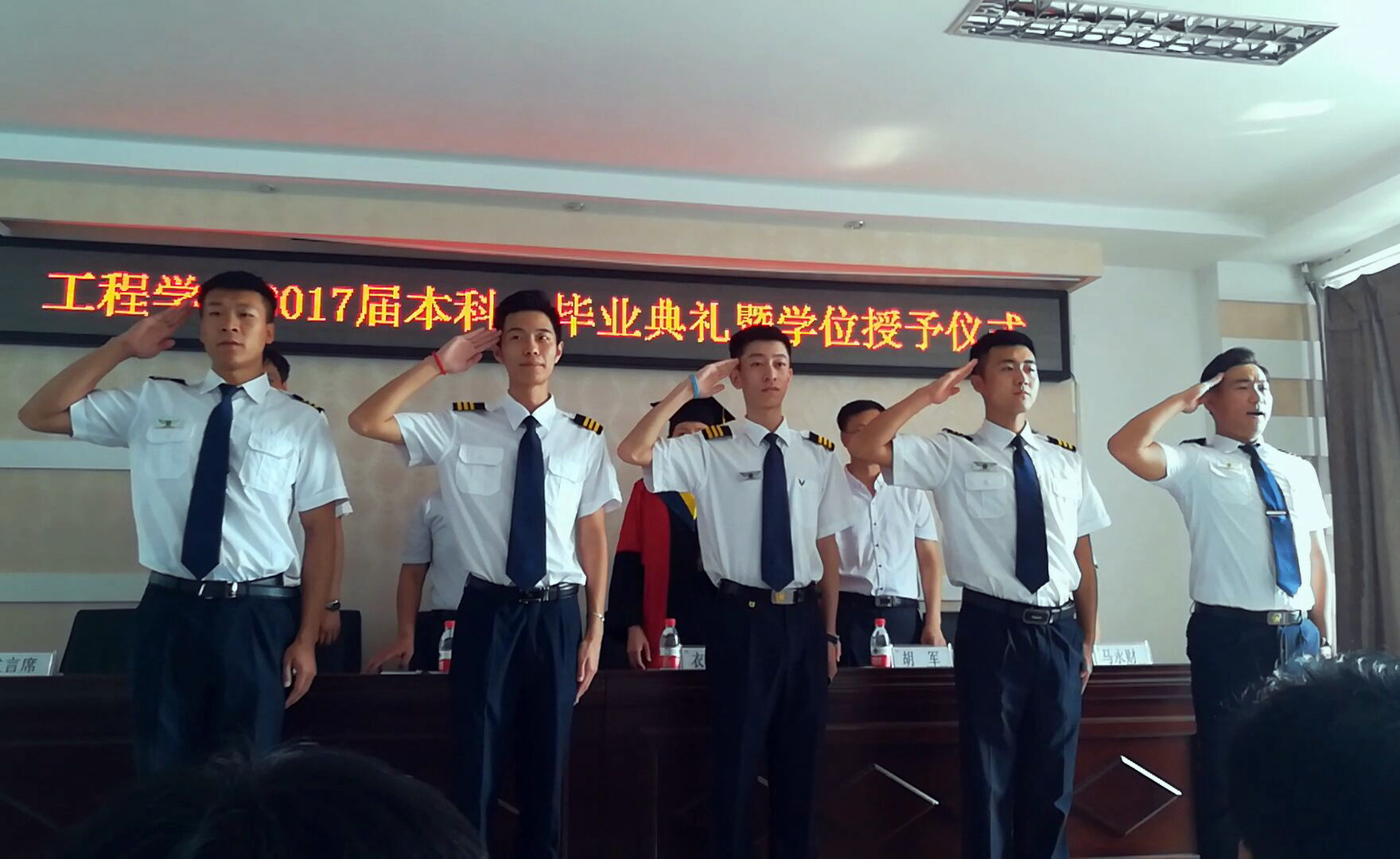典礼上,胡军副经理代表公司宣读了2017届准予毕业本科生的决定、马永财副经理宣读了授予学士学位文件,共527名毕业生修完教学计划规定的全部课程,成绩合格,准予毕业并授予学士学位,王艳超副书记宣读2017届优秀毕业生表彰文件,公司领导为他们颁发证书。伴随着喜庆激昂的乐曲声,毕业生们依次走上主席台,校学位评定委员会委员衣淑娟教授为他们拨动流苏、颁发学位证书并合影留念,共同记录下这神圣的时刻。仪式中,为了凸显飞行技术专业的特色,典礼上还专门安排为飞行技术专业学员授衔环节,使毕业典礼更加庄重而具特色。