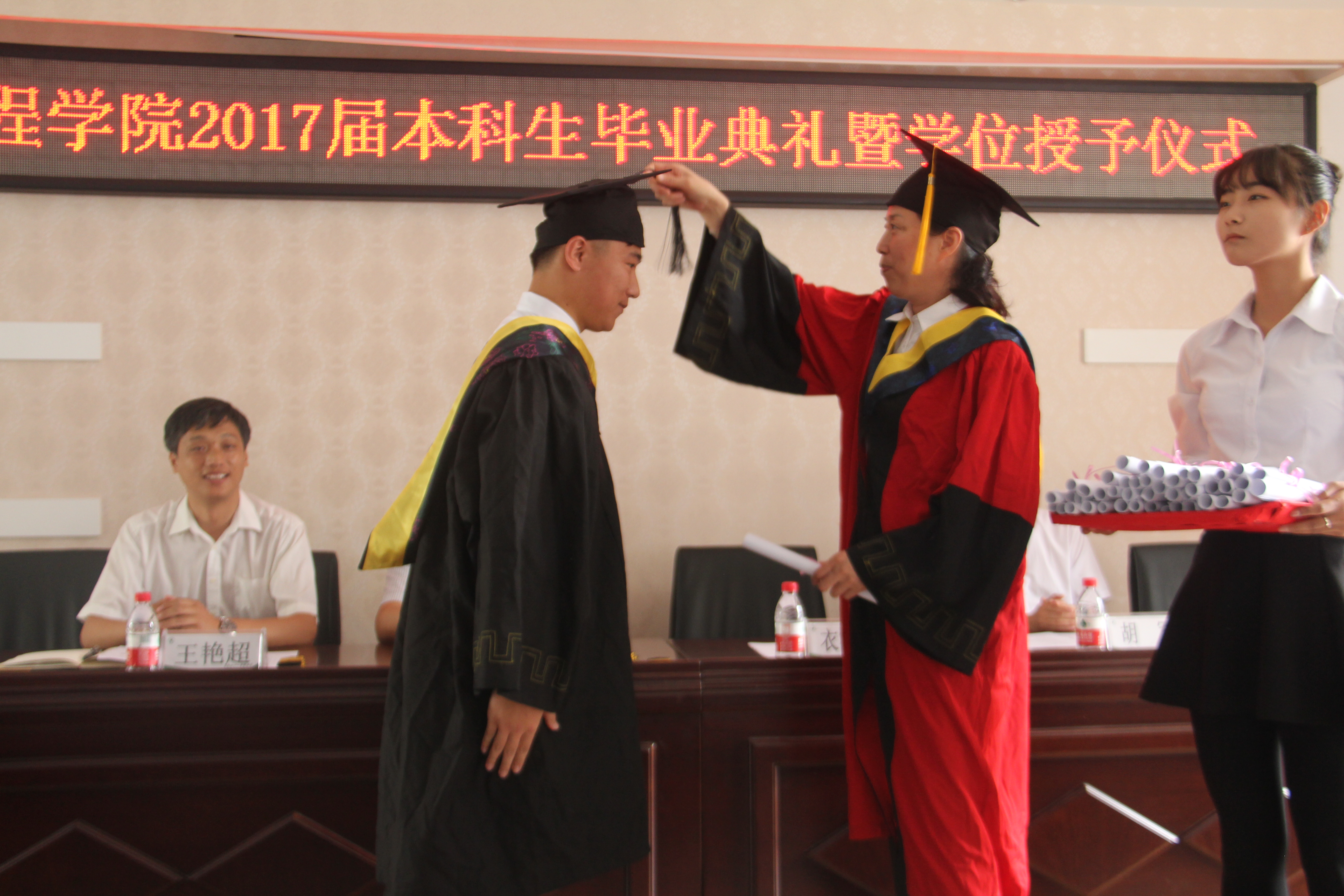 校学位评定委员会委员衣淑娟教授为毕业生拨动流苏、颁发学位证书