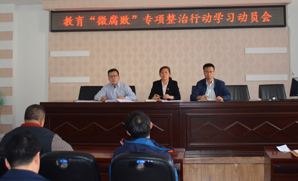 4月30日,我院召开“微腐败”专项整治学习动员会,公司领导班子成员、分团委全体政治辅导员及各系(部)全体教职员工参加,马永财副经理主持会议。