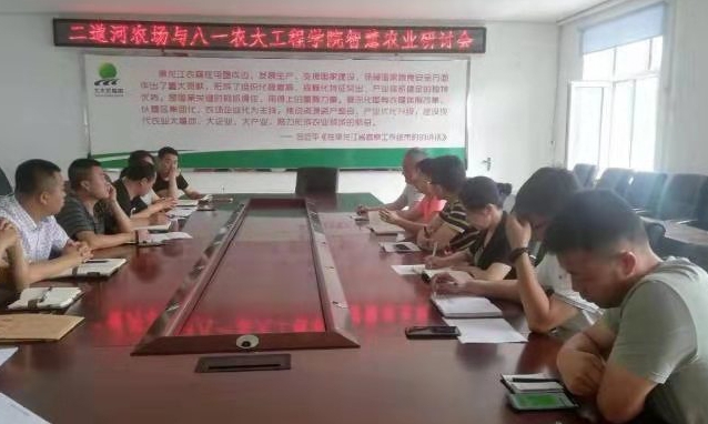 调研期间,服务队首先对二道河农场的农机种类、性能和使用情况进行系统调研,初步掌握了农场农机配备的现状。然后,老师们亲自到田间地头现场考察,到农户家中组织农户座谈,让他们提出农机应用的相关技术问题,聆听农户对农机需求最真实的声音以及对智慧农业的迫切需求。最后,他们结合实地调研情况,在农场召开了智慧农业讨论会。会上,双方在农机信息化及智慧农业等领域达成合作共识,决定在今后的合作中,以目标为导向,发挥高校智力和人才优势,对一些重点项目开展研究,共同作出一些前瞻性的新技术、新模式来应用于农业生产一线,力争打造校企合作的新样板。