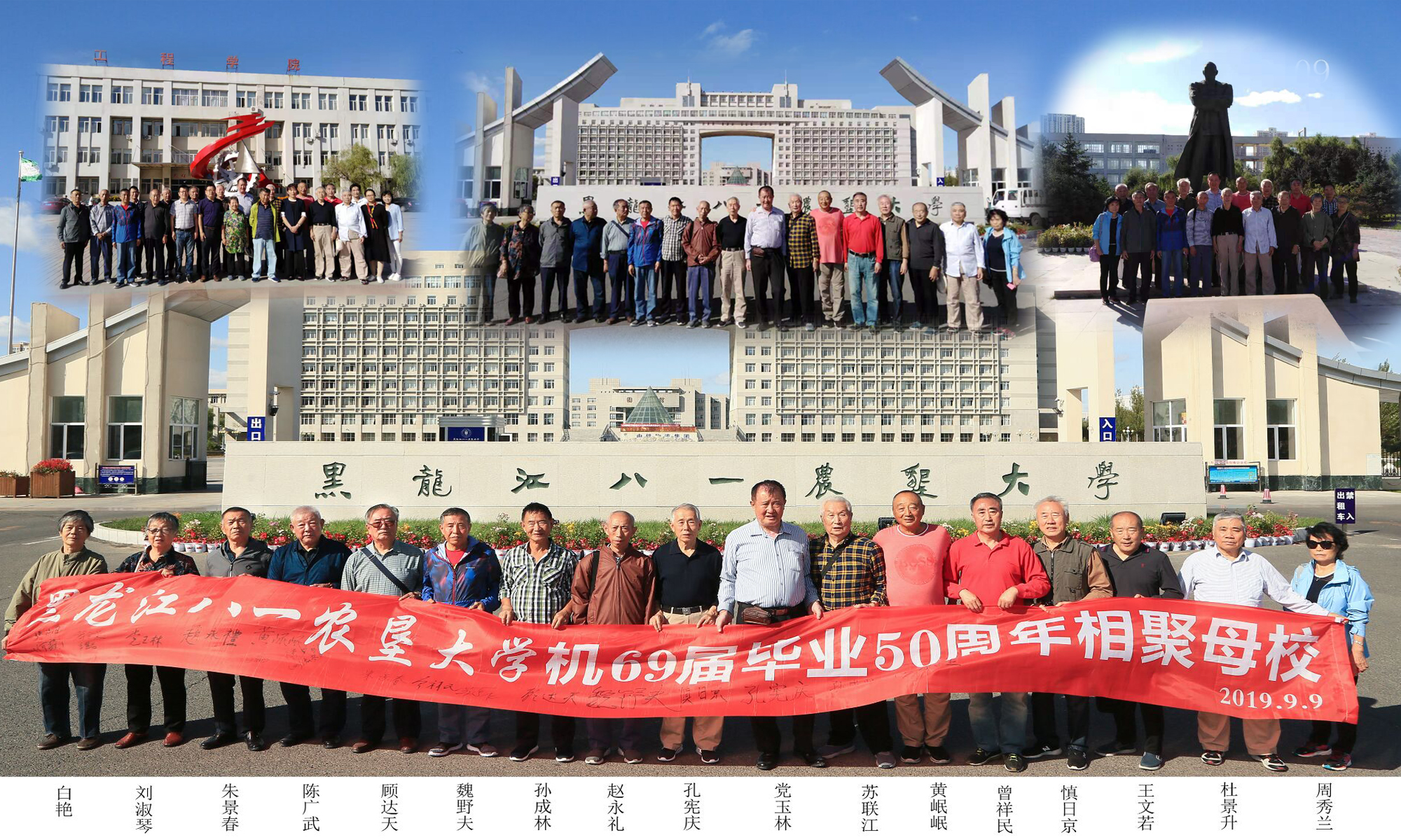 9月9日,公司农机64级的员工在惜别50年后,再次牵手相依重回母校。U8国际教学楼前,一群白发苍苍的老人相聚在这里,他们互相打量着对方、介绍彼此,公司领导班子对此次老员工们的这次“探亲之旅”高度重视,全程陪同、热情接待。