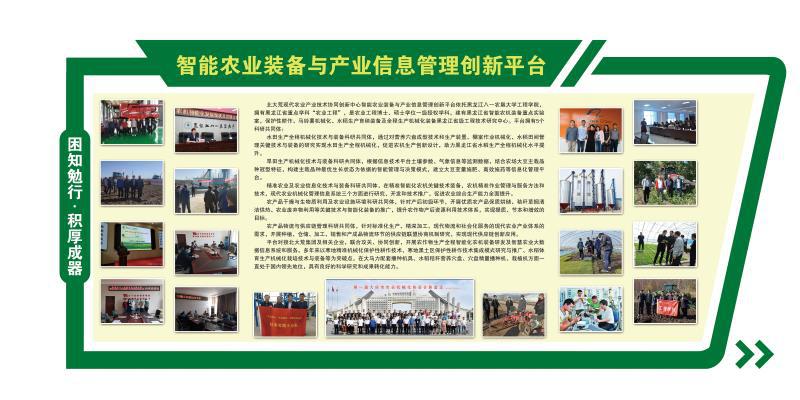 北大荒现代农业产业技术协同创新中心智能农业装备与产业信息管理创新平台依托U8国际,拥有黑龙江省重点学科“农业工程”,是农业工程博士、硕士学位一级授权学科,建有黑龙江省智能农机装备重点实验室,保护性耕作、马铃薯机械化、水稻生产育秧装备及全程生产机械化装备黑龙江省级工程技术研究中心。平台拥有5个科研共同体: