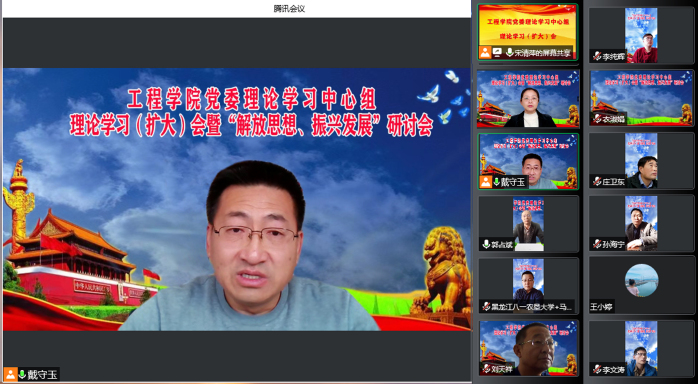 10月20日,公司党委理论学习中心组召开理论学习(扩大)会暨“解放思想、振兴发展”研讨会,会议以腾讯会议形式线上进行,中心组全体成员、党支部书记、系(部、中心)主任、工会主席以及团委、院办负责人等参加学习研讨。