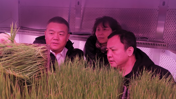 科研团队参观水稻育秧基质土试验室