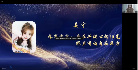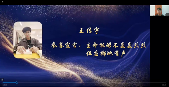 选手们以极具特色的方式清楚的介绍了个人基本信息,语言准确流畅,自然得体,内容或大气磅礴,或柔情温婉,或昂扬向上,或朴素风雅,都展示了新时代工程学子昂扬的精神风貌。