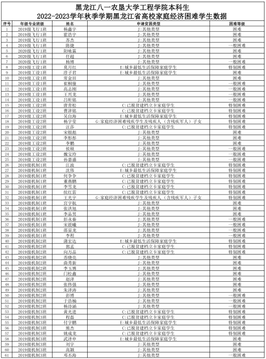 U8国际本科生2022-2023学年秋季学期黑龙江省高校家庭经济困难员工数据