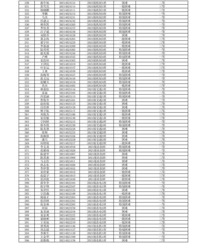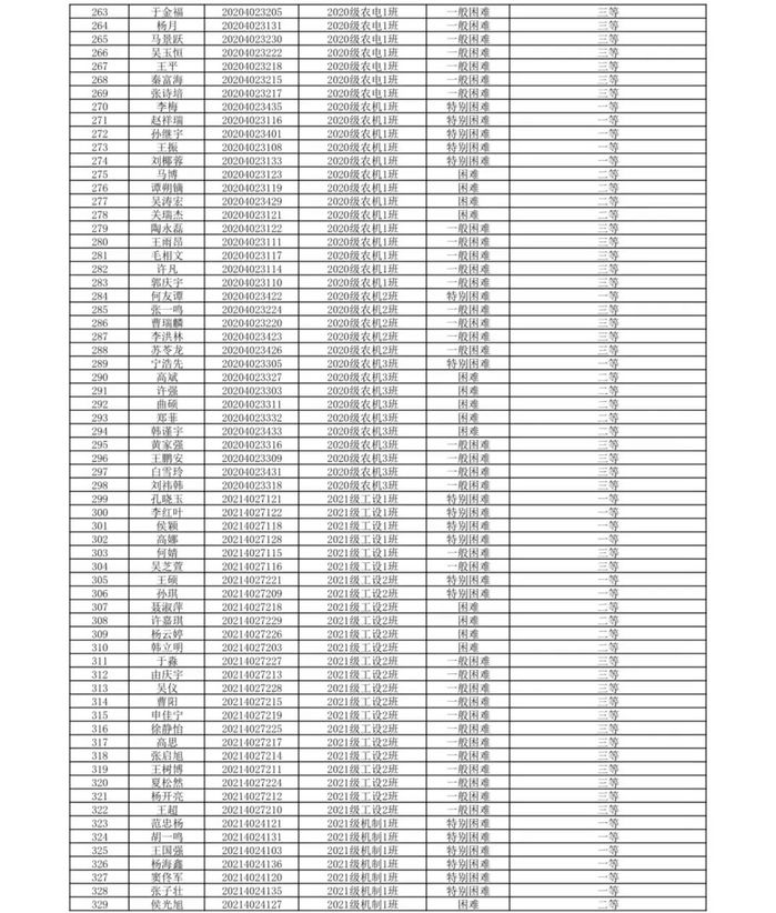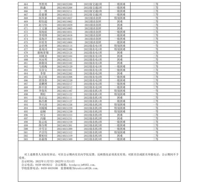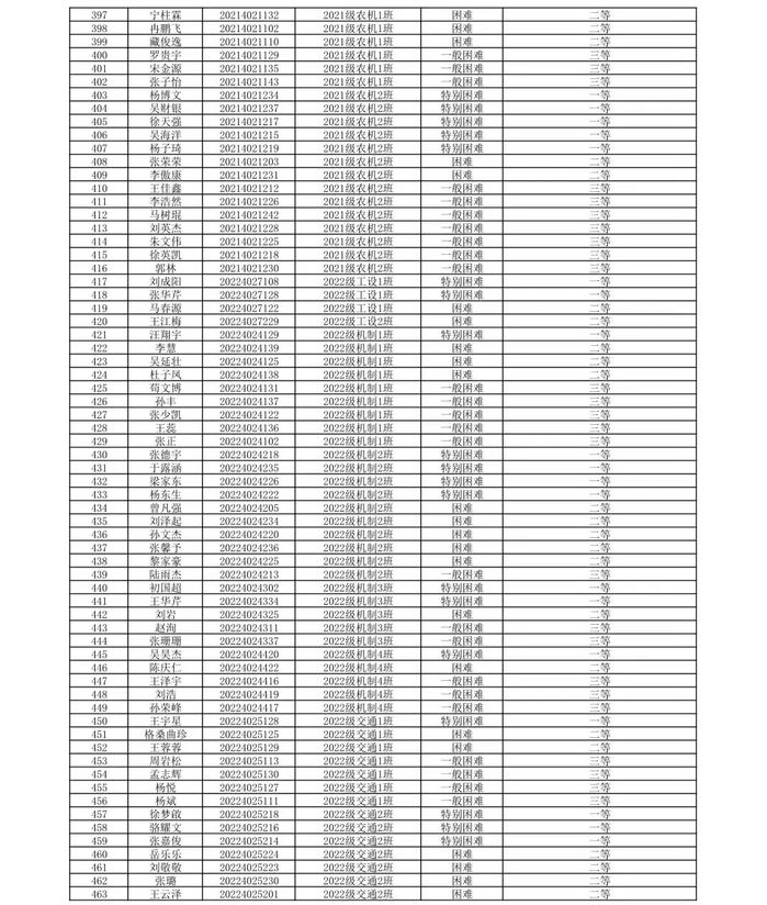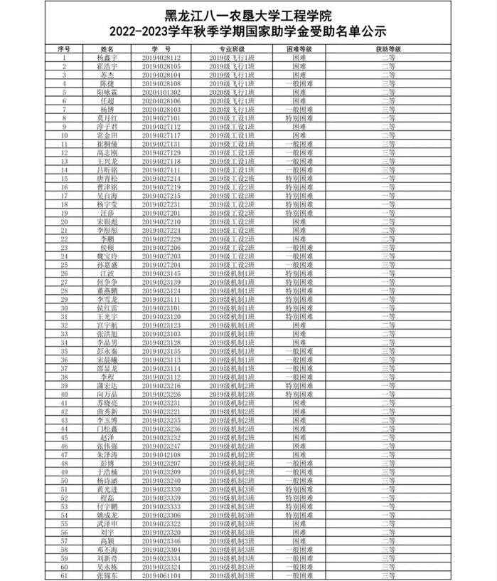 公司2022-2023学年秋季学期国家助学金受助名单公示