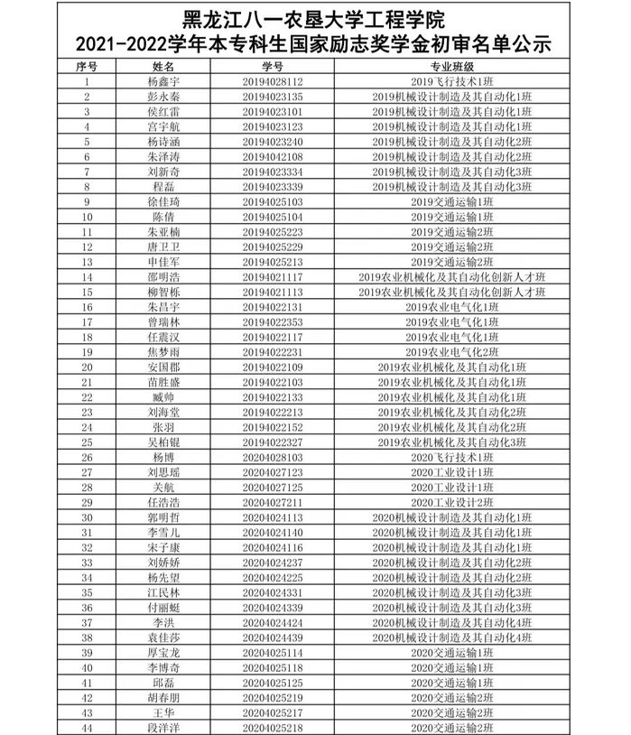 公司2021-2022学年本专科生国家励志奖学金初审名单公示