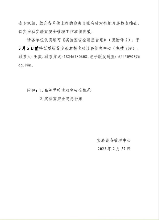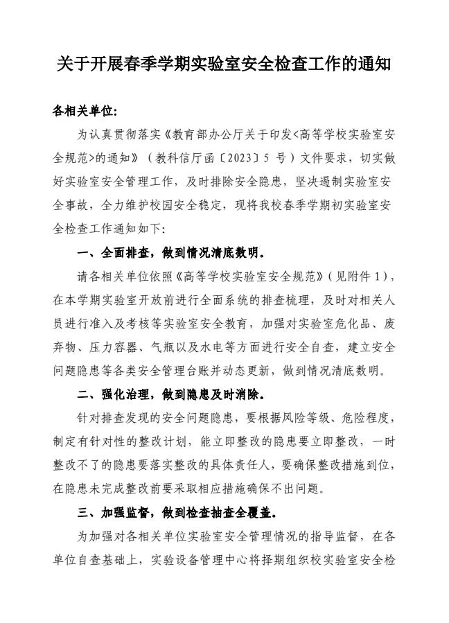 关于开展春季学期实验室安全检查工作的通知