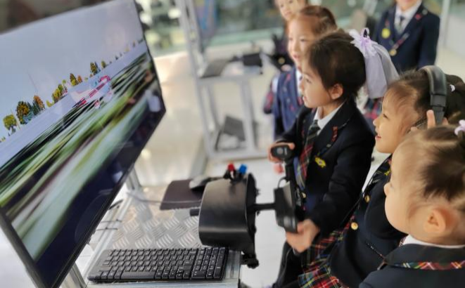 联谊活动中,小朋友们在飞行系教师兼课外辅导员的组织和讲解下,了解了军用飞机与民用飞机的外观差异,知道了固定翼飞机和旋翼飞机的飞行原理。同时,孩子们还参观了飞机的部分组成零件以及仪表实物等,初步了解了飞机飞上蓝天的机械原理,为了更加深入的了解飞机的飞行过程,小朋友还进行了飞行模拟器的体验飞行环节,大班小朋友王瑜娜在体验完模拟飞行后兴奋的说,长大也想驾驶飞机,在祖国的蓝天上自由飞翔。