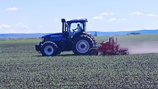 试验机械设备在大豆田间进行锄草作业
