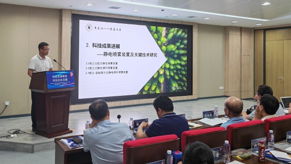 科技研讨中,科研院所的专家团队展望了农机产业在推进我国农业机械化、现代化发展过程中的广阔前景,分享了一批科研机构在农机研发领域取得的具有行业领先水平的实用技术成果。胡军教授作题为《植保机械与高效施药技术》科研成果推介,报告主要针对黑龙江省寒区黑土保护性耕作技术装备等开展的植保机械与高效施药技术、农药雾滴雾化沉积飘失理论等基础理论研究进行了解读。同时,还特别对在高效植保静电施药装备及喷雾机喷雾质量智能检测方面取得多项成果进行了阐述。