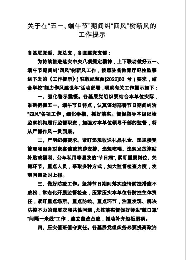 关于在“五一、端午节”期间纠“四风”树新风工作