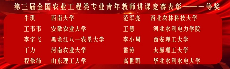 研讨会采取学术报告、专题研讨、青年教师教学竞赛相结合的形式进行。农业机械化及其自动化系青年教师李宇飞代表公司参加了第三届全国农业工程类专业青年教师讲课竞赛并获得一等奖。竞赛中,李宇飞依据《农业机械学》课程特点,通过融入课程思政、深化教学认知、转换教学范式、丰富教学内容、创新教学方法等方式,展示了独具特色的教学设计和教学风采。