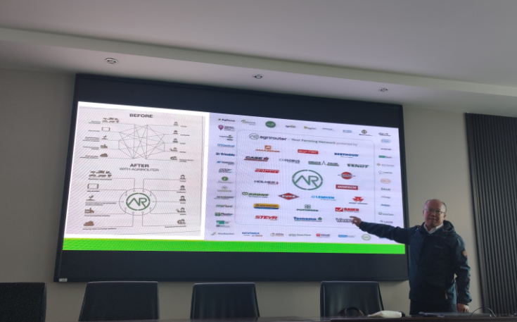 10月22日,公司邀请黑龙江省农垦天阳农机有限公司副总经理王兵开展学术交流。王兵对欧洲的农机智能装备的应用现状,智能喷药机和智能播种机在中国落地场景操作应用,Agrirouter无线数据文件交叉互联进行了介绍,与公司教师和研究生开展了研讨。