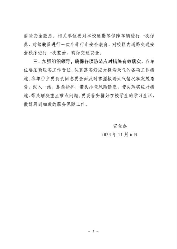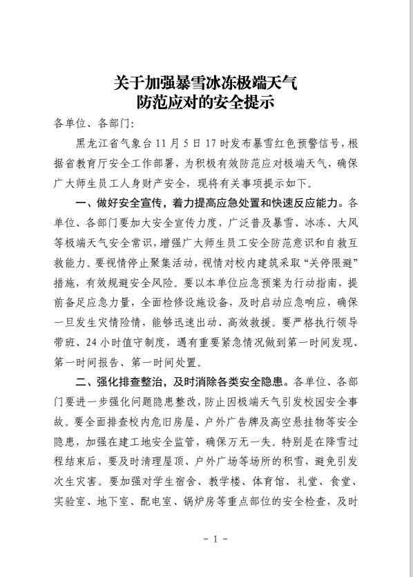 公司关于加强暴雪冰冻极端天气防范应对的安全提示