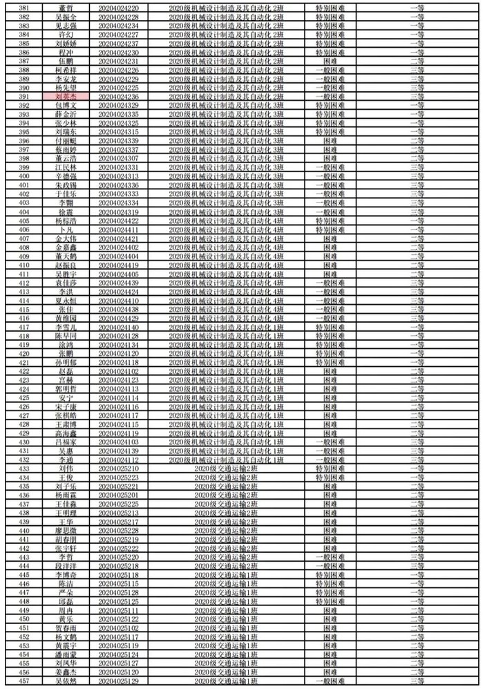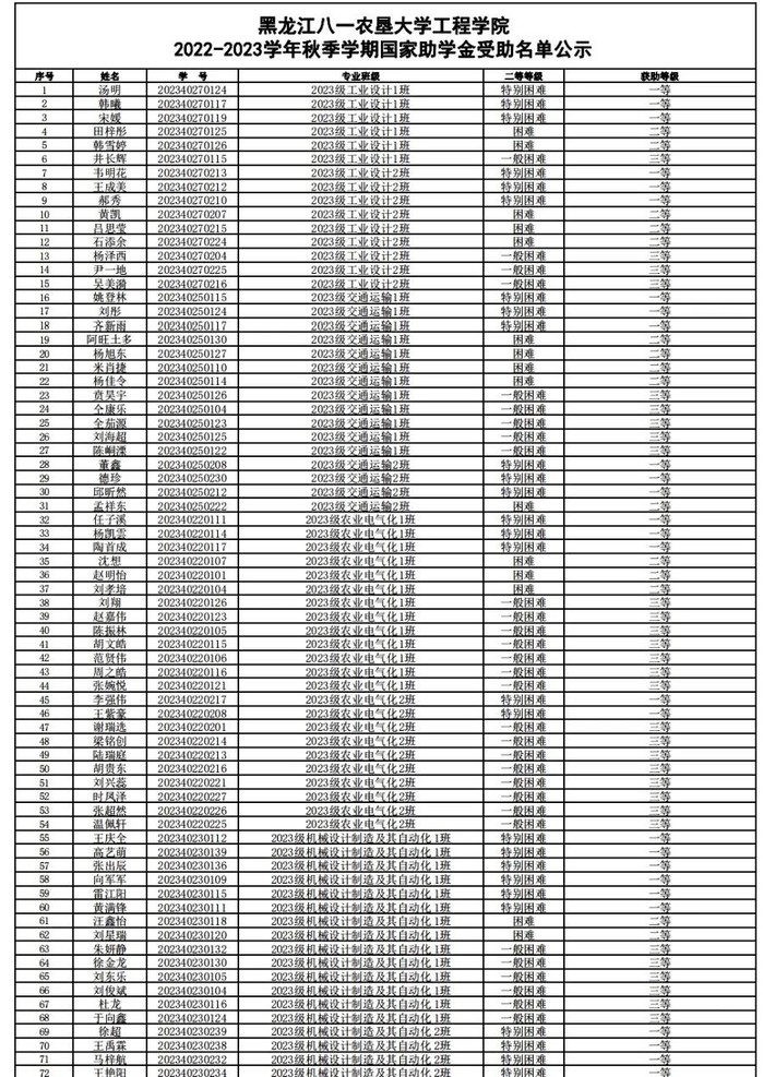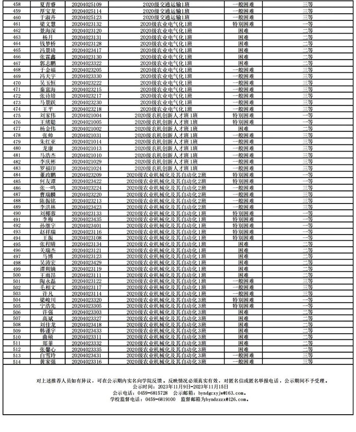 U8国际2022-2023学年秋季学期国家助学金受助名单公示