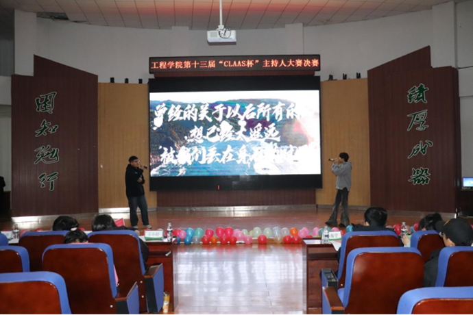 为进一步丰富同学们的课余文化生活,展现公司学子热爱生活和拼搏进取精神,为公司爱好播音主持的同学搭建一个展现自我的舞台,特于11月16日晚在老员工活动中心举办第十三届“CLAAS杯”主持人大赛总决赛。公司党委副书记孙海宁、全体辅导员老师及员工代表300余人参加本次活动。本次大赛由自我介绍、模拟主持、影视配音、集体朗诵四个环节组成。