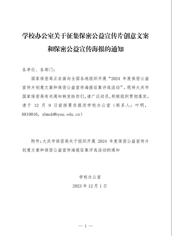 集团办公室关于征集保密公益宣传片创意方案和保密公益宣传海报的通知