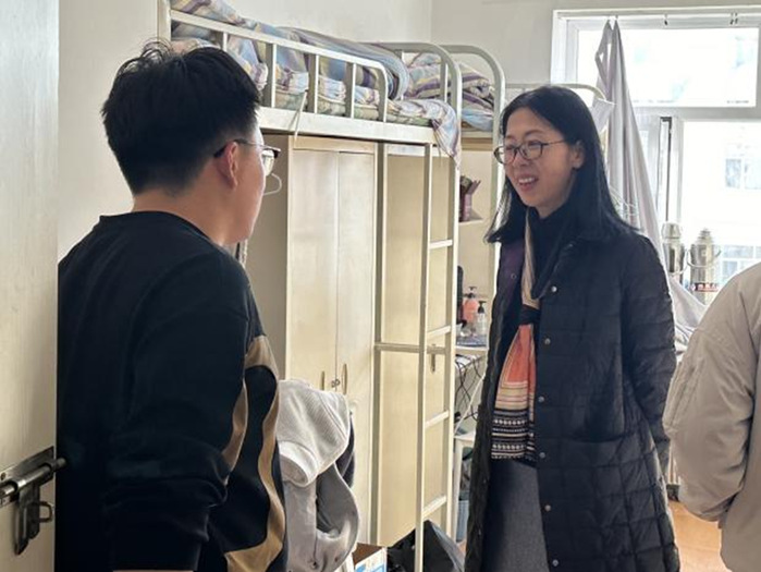 教工党员深入员工宿舍,与员工面对面交流,从思想动态、专业学习、生活习惯、宿舍卫生、心理健康、就业指导等方面对员工进行教育引导。同时,教工党员积极鼓励员工党员、员工干部积极发挥模范带头作用,从身边做起、从小事做起,将自身所在宿舍建设成“优秀文明寝室”,带领同学们共同营造温馨舒适的宿舍环境。