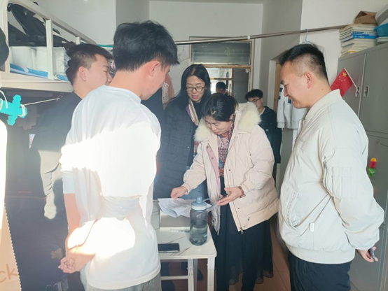 在毕业年级寝室中,公司领导班子、各专业系主任与员工交流就业进展和考公考研情况。公司党委书记宋清萍热心询问毕业生在找工作中遇到的疑惑与困难,并了解毕业生对自我职业生涯的规划以及就业进展,她嘱托员工要提前做好职业规划,充分了解未来的就业发展前景。公司经理马永财与考公考研员工进行交流,并为考研员工在学习过程中遇到的问题提出解决办法,同时,他积极引导同学们调整心态,学会积极理性地看待考公考研,并结合自己的实际情况和职业规划做出决策。