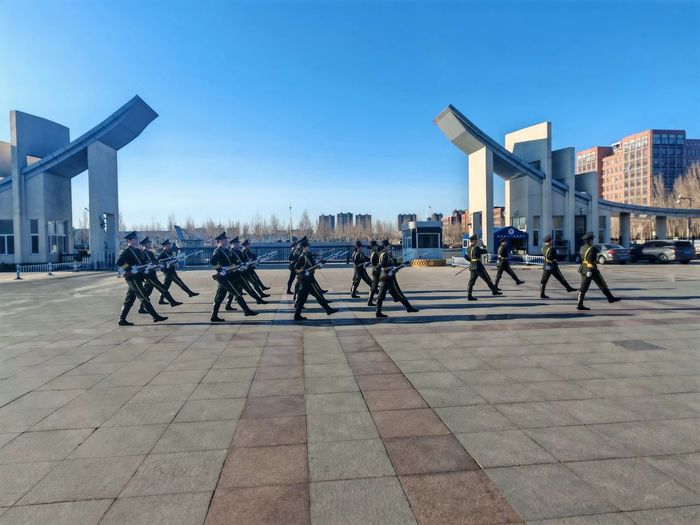 早晨6时40分,随着激昂的音乐,国旗护卫队着装整齐,步伐矫健,以饱满的热情,庄严地护卫五星红旗入场。全体师生面向国旗肃然而立,怀着满腔的热情和敬意,目睹着五星红旗冉冉升起。