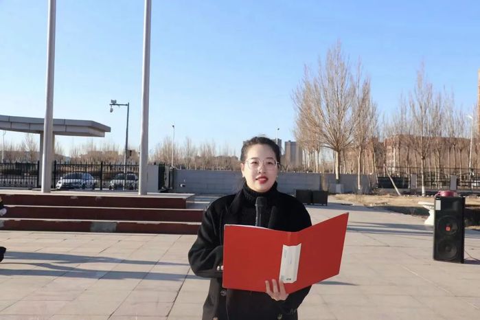 优秀学兵、一次集团军嘉奖、四有优秀士兵获得者,退伍士兵2022级农机(1)班邢艺做题为《弘扬爱国主义 砥砺奋进新时代》的国旗下演讲。以自身的事迹,为同学们讲述五星红旗,它不仅仅是指引着祖国一代又一代人开创辉煌的事业,也是我们国家的象征和标志,是民族精神、爱国主义精神的集中体现。