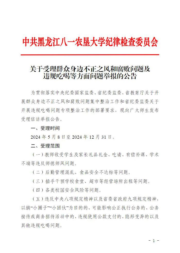关于受理群众身边不正之风和腐败问题及 违规吃喝等方面问题举报的公告