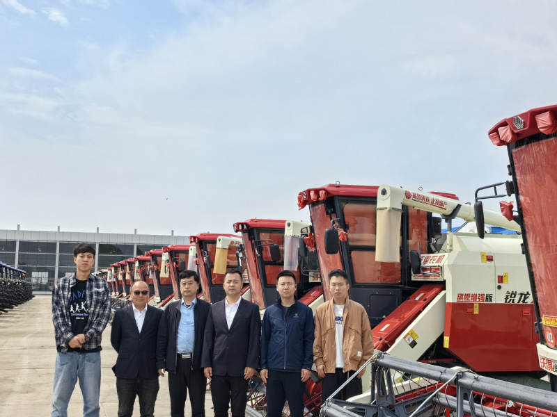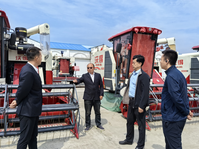 会后项目团队一行与农场农业发展部相关负责人到农场现代化管理中心和生产管理区,实地考察了示范农场水稻收获作业机具配备和应用机型,并对水稻适时收获机收减损技术推广进行现场指导。