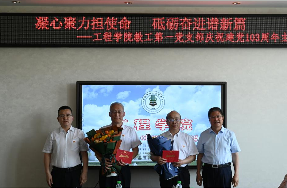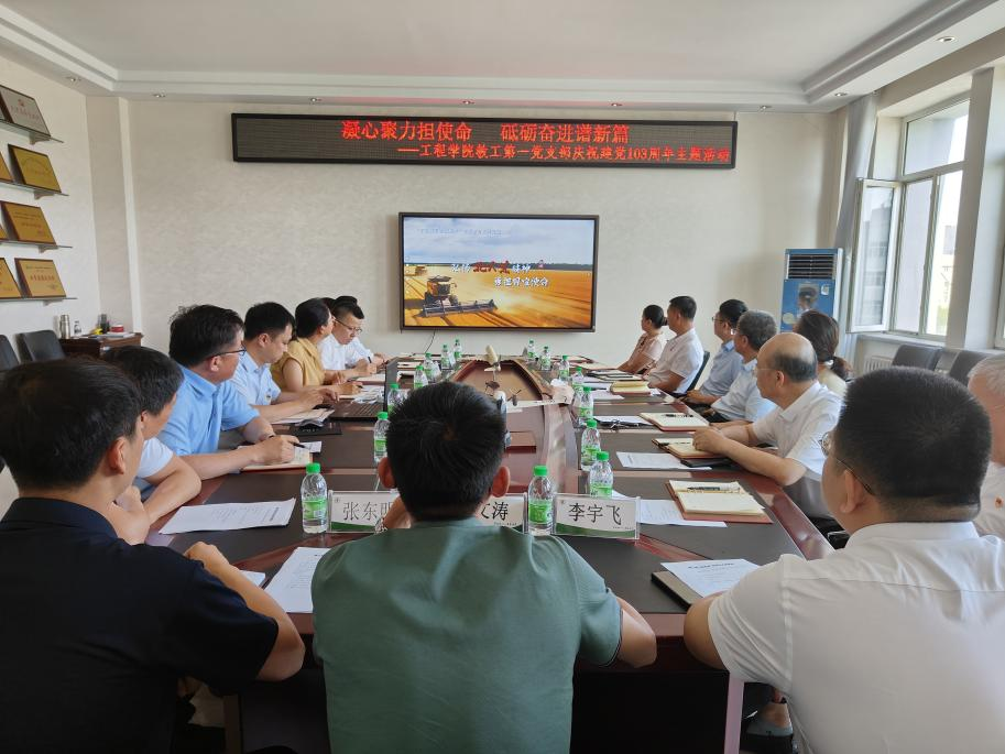 王熙同志和赵军同志先后分享入党初心故事。王熙以自身“垦二代”的经历,分享自己从教以来的业绩成果,始终都是立足八一农大,坚持培养多名本硕博员工,投身建设北大荒,并积极将科研成果在垦区转化应用,切实解决农业机械方面的实际问题,着力践行用科技和人才武装、支援垦区。赵军分享自己的入党经历,并表示继续将北大荒精神融入教学科研,赓续红色基因,不断培养“知农爱农强农兴农”新型应用型人才。