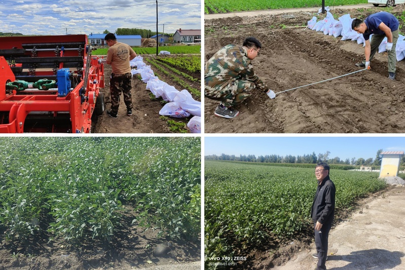 7月下旬,宋江团队联合省农机院在加格达奇大杨树平贝母种植基地开展了两段式平贝母药材收获机的田间性能测试,测试指标基本满足农艺要求,为平贝母收获机的推广应用奠定坚实基础,8月9日至10日,团队还到哈尔滨市吉稻粮农业专业合作社平贝母基地实地考察了平贝母中药材与大豆套种栽培模式,双方达成继续开发配套播种和采收生产装备的合作意向,助力平贝母中药材与大豆套种机械化栽培模式推广应用。