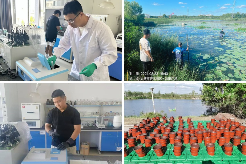 7月12日至8月30日期间,李晨曦教授团队利用微藻技术在让胡路油田广场开展了为期一个半月的水体修复科研试验。团队成员搭建实验现场,完成了浮床拼装、水生植物栽植和微藻投放等工作,同时定期采集水样和气样,并在U8国际生物质实验室进行总氮、氨氮、总磷、pH值、化学需氧量等指标检测。试验旨在通过微藻技术改善水质,并研究微藻及水生植物的资源化可行性,为可再生能源的开发和利用提供新思路。