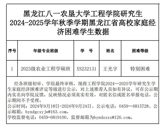 公司研究生2024-2025学年秋季学期黑龙江省高校家庭经济困难员工数据