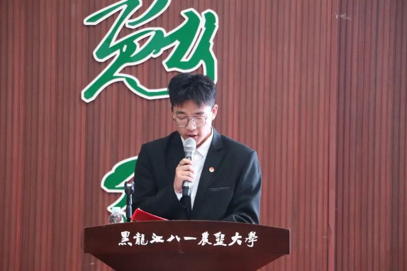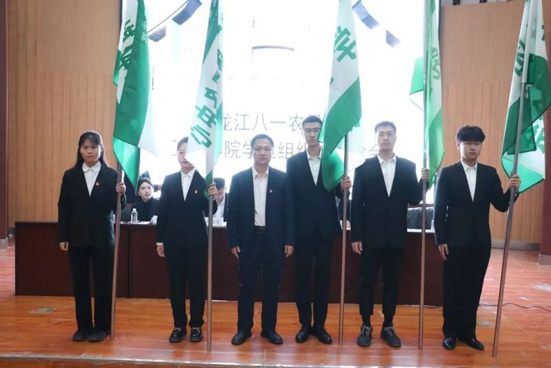 授旗完毕,公司员工组织管理层代表王镜衔代表、公司员工组织中层代表何新锐依次发言并表态,表明了各员工组织要树立全心全意为同学服务的思想,切实为同学做贡献;在公司领导、老师的指导下,做公司良好作风的开拓者、继承者和实践者;在找准定位的同时,不忘初心,牢记使命,做有理想有价值的员工骨干。