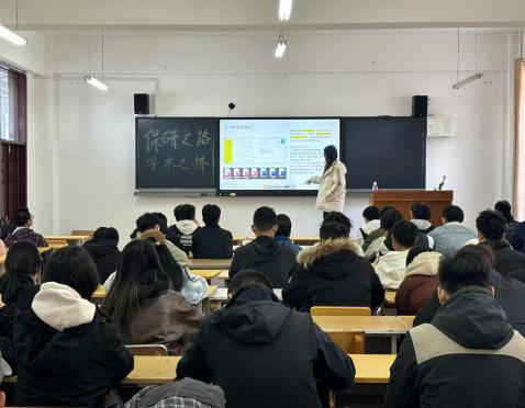 成功保研的21级张德瑞、聂淑萍、梁晓彬同学以自身的经历为切入点,详细讲述了如何在大学学业上保持优异成绩,强调了认真对待每一门课程、积极与老师互动以及主动探索知识的重要性。同时,他们还分享了自己参与科研项目的历程,从如何寻找合适的导师和课题,到如何克服研究过程中的困难,让同学们深刻认识到科研经历在保研中的重要价值。