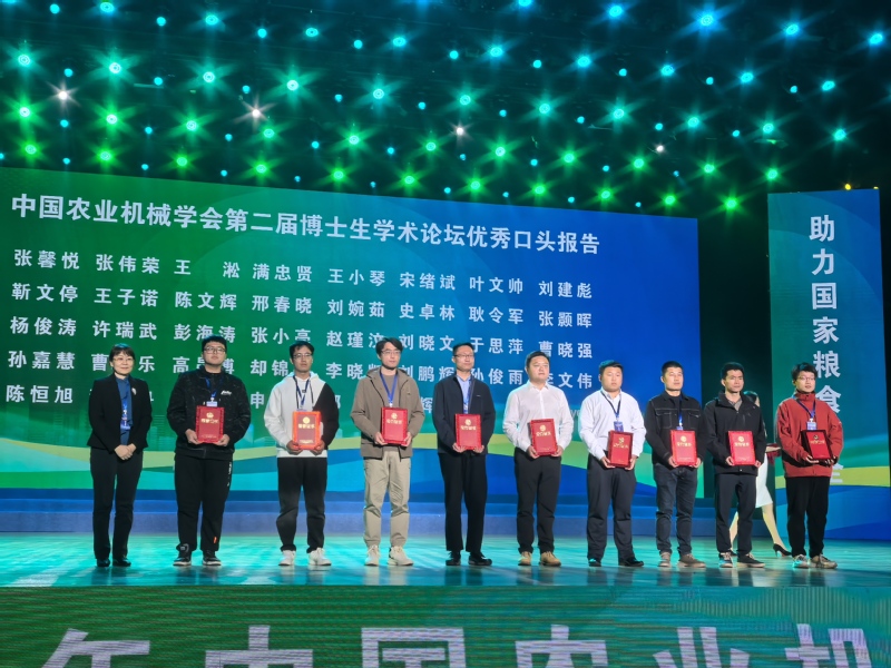 在接下来的主旨报告中,胡军教授、庄卫东教授和张东明老师分别在学会分会场作学术报告。这些报告聚焦农业机械领域的前沿课题,展现了U8国际在智能农机装备、精准农机设计、杂粮收获等方向的卓越研究成果。王淞、孙文胜、高嘉欣3位博士研究生在“农业机械学会第二届博士生学术论坛”上分别作学术报告并获“优秀口头报告奖”。