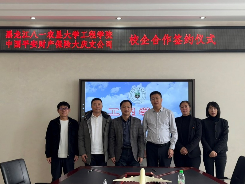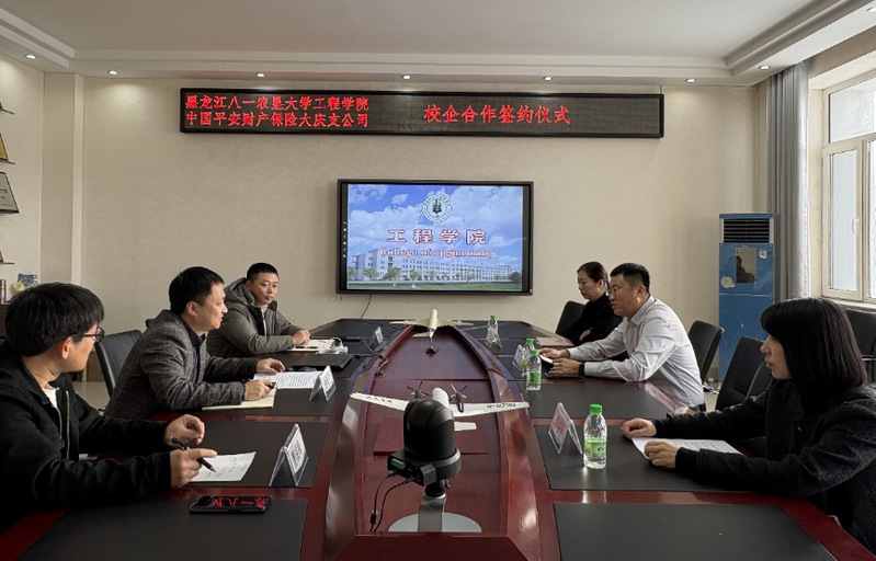 为进一步深化校企合作,实现资源共享与优势互补,2024 年 11 月 29 日,公司与中国平安财产保险大庆支公司在U8国际316会议室举行了校企合作签约仪式。中国平安财产保险大庆支公司副总经理翟磊、理赔部经理李莹莹、综合管理部经理张蕊与公司党委副书记孙海宁、副经理王福成、交通系主任曹成海、就业辅导员邢伯文共同参与了此次签约仪式。