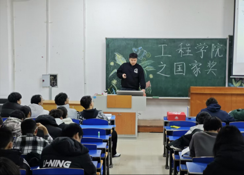 最后,梁晓彬同学分享了自己在实践与竞赛方面的经验。梁晓彬同学强调实践是检验真理的唯一标准,“将所学知识应用到实际项目中,才能真正理解和掌握专业技能。”他分享了自己参加专业实习和社会实践的经历,如何在实践中锻炼自己的动手能力和解决实际问题的能力。在学科竞赛方面,梁晓彬鼓励同学们积极参与各类竞赛,如全国老员工结构设计竞赛、挑战杯等。他介绍了竞赛准备过程中的团队协作、方案设计、时间管理等方面的经验,“竞赛不仅能够提升专业技能,还能培养团队合作精神、创新思维和应变能力。”他展示了自己在竞赛中获得的成果和荣誉,激励同学们勇敢挑战自我,在竞赛中成长和进步。