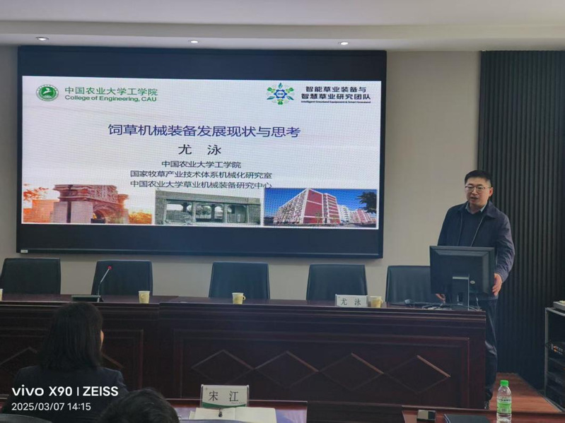 报告会上,宋正河教授以“数字孪生技术与智能农机装备设计运维”为主题,从农业生产系统数据体系、数字孪生核心技术、应用场景等方面做了精彩报告,并提出了新思路、新理念和新方法。尤泳副教授以“饲草机械装备发展现状与思考”为主题,从牧草市场需求、牧草全程机械化存在的技术卡点出发,介绍了团队近年来开展的关键技术与装备研发。黄光群教授以“农业废弃物绿色好氧发酵与利用关键技术装备”为主题,介绍了团队农业废弃物绿色好氧发酵与利用关键技术与装备的最新研究进展。