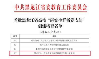 近日,黑龙江省委教育工委公布了关于首批黑龙江省高校“研究生样板党支部”创建培育名单的评选结果,公司研究生第一党支部获评全省高校“研究生样板党支部”创建培育单位。