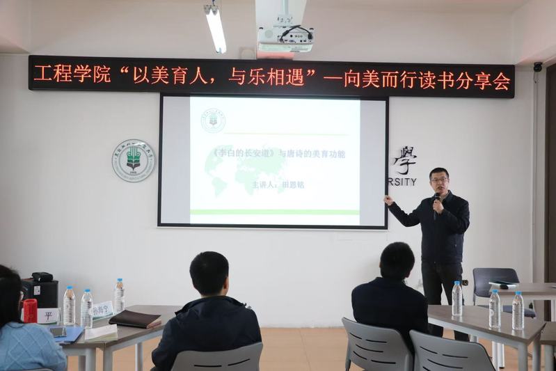 田恩铭以“《李白的长安道》与唐诗的美育功能”为题,通过回溯李白跌宕起伏的生平经历,深入剖析其诗歌中瑰丽的想象与壮阔的意境,阐述唐诗如何以文学之美启迪心灵、塑造审美,展现古典诗词在美育层面的深厚价值与独特魅力。