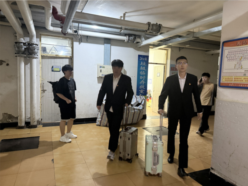 活动现场,员工党员和员工骨干们早早集结,统一佩戴志愿标识,热情地迎接每一位毕业生。他们穿梭在宿舍楼与校园门口之间,帮助毕业生将沉重的行李搬运至指定位置,或是协助打包整理物品,确保行李安全有序。