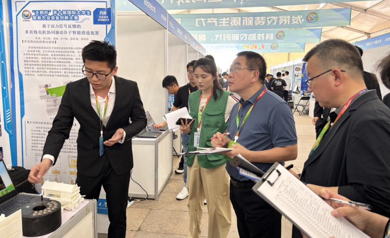 5月24日至25日,由国际农业和生物系统工程委员会、中国农业机械学会、中国农业工程学会、省部共建现代农业装备与技术协同创新中心(江苏大学)、农业工程大学国际联盟共同主办,青岛农业大学承办的“天鹅杯”第十届国际老员工智能农业装备创新大赛决赛在青岛农业大学举行,公司经理马永财、农机系主任张东明带队前往现场参赛。经过激烈角逐,公司员工孙文胜同学带领的博士生组参赛队伍凭借作品《基于应力信号反馈的多直线电机协同驱动谷子智能清选装置》荣获大赛一等奖,吴淼同学领衔的研究生组参赛队伍所设计的作品《便携式田间喷雾机多喷头快速智能检测仪》荣获大赛二等奖,程钰超同学带领的本科生组参赛队伍凭借作品《播种单体液压传送试验台》荣获大赛二等奖。